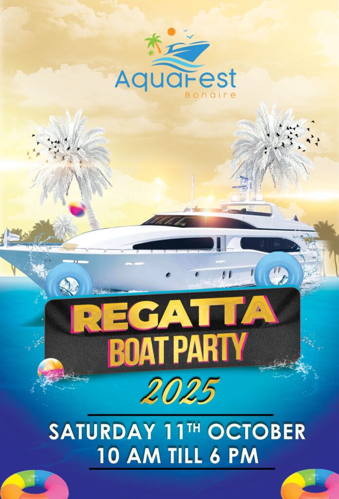 On Saturday, downtown Kralendijk transforms into a vibrant scene on the water – with yachts, small boats, jet skis, floating tubes, and even sunbeds drifting to the rhythm of music and laughter. Splashes, beats, and a festive crowd create an atmosphere you simply can’t miss.